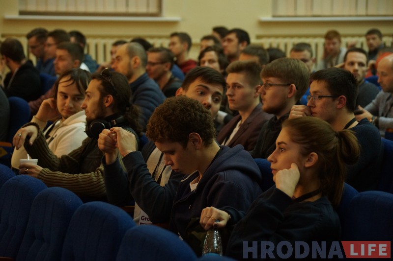 “Я бачу тут шмат нашых, – кажа Алена Лівак, дэкан факультэта матэматыкі і інфарматыкі ГрДУ. – Шмат знаёмых вакол, нават цяжка адразу вызначыць, хто з іх нашы сённяшнія студэнты, хто выпускнікі, а хто ўжо ментары. Толькі сёлета мы выпускаем 295 матэматыкаў, сярод іх 275  – праграмісты. Наш колішні студэнт, Яўген Неўгень, каторага сёння ўсе ведаюць як стваральніка MSQRD, некалі таксама пачынаў з хакатона. Пасля перамогі ён загарэўся ідэяй прывезці “Garage48” у Гродна, бліжэй да нашых студэнтаў і выпускнікоў. Увесь час мы ішлі да гэтага і рады, што зараз прымаем хакатон у сценах універсітэта”.
