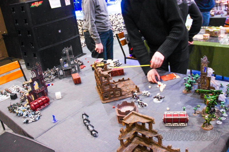 Вылучаліся гульцы за шырокімі сталамі, якія расстаўлялі на поле сапраўдныя крэпасці і атрады воінаў з сусвету Warhammer 40,000. Гульні з мініяцюрамі – адно з папулярных сучасных хобі, немалаважнай часткай якога з’яўляецца зборка, афарбоўка і калекцыянаванне мадэляў. Да фігурак дакупляць цэлыя кнігі з правіламі вядзення бою. Хлопцы з клуба «Цэнтурыён» распавялі, што для іх Warhammer гэта займальнае хобі.