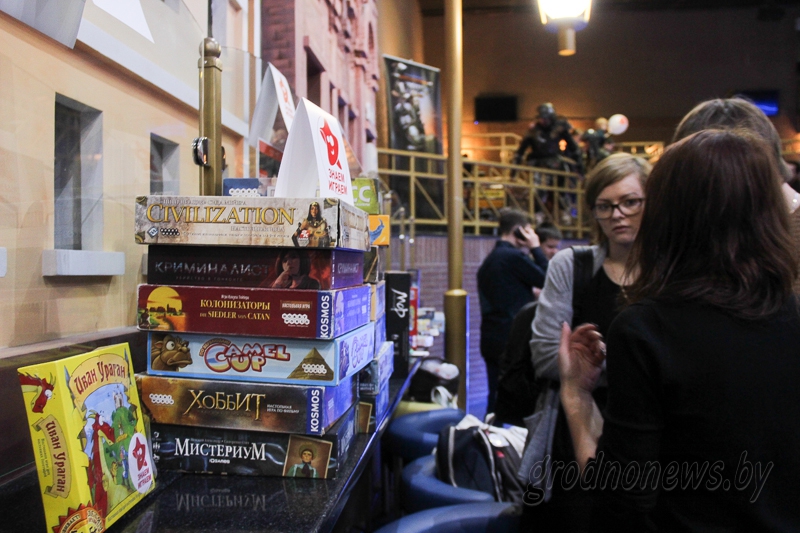 Галоўнае, што кідалася ў вочы, – доўгія шэрагі з вялікай колькасцю настольных гульняў. Тут і тактычныя гульні, і картачныя, гульні на ўяўленне і на ўдачу, а таксама асобны стэнд, прысвечаны космасу і сусвету «Зорных войн». Асабліва наведвальнікі цікавіліся вялізнымі версіямі гульняў «Дженга» і «Каркасон»: можна было пабудаваць вежу з брускоў велічынёй з дарослага чалавека і стаць феадальным магнатам раскладзенай на каўраліне дзяржавы.