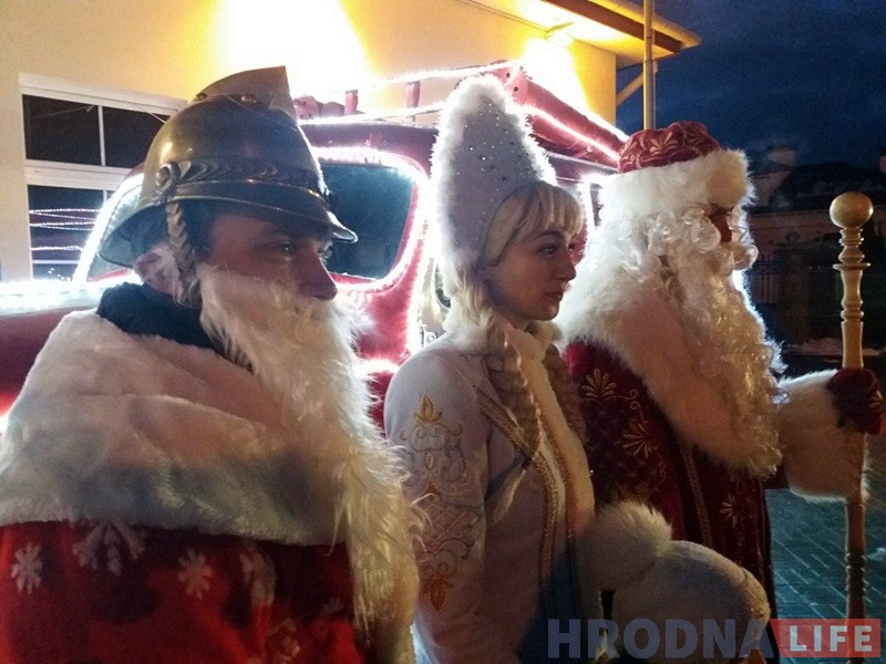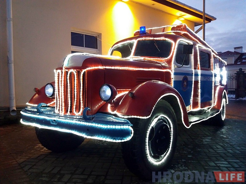 Побач з каланчой запаліліся і навагоднія агні на пажарным рэтра-аўтамабілі.