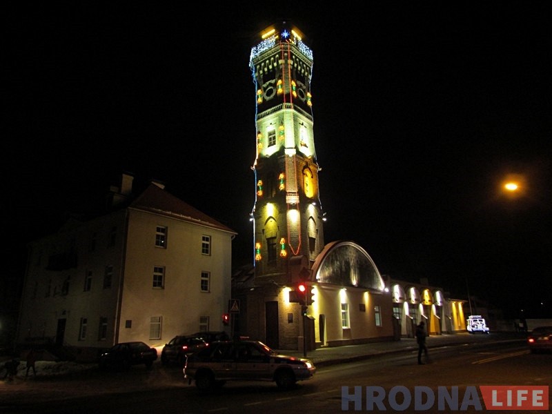 Традыцыя ўпрыгожваць 33-метровую вежу ў ратавальнікаў пачалася ў 2014 годзе. На ўключэнне святочнай ілюмінацыі штогод запрашаюць дзяцей. У гэтым годзе на свята “Бяспечная елка” запрасілі дзяцей з дзіцячых дамоў, школ-інтэрнатаў, дапаможных школ Гродна і Гродзенскага раёна