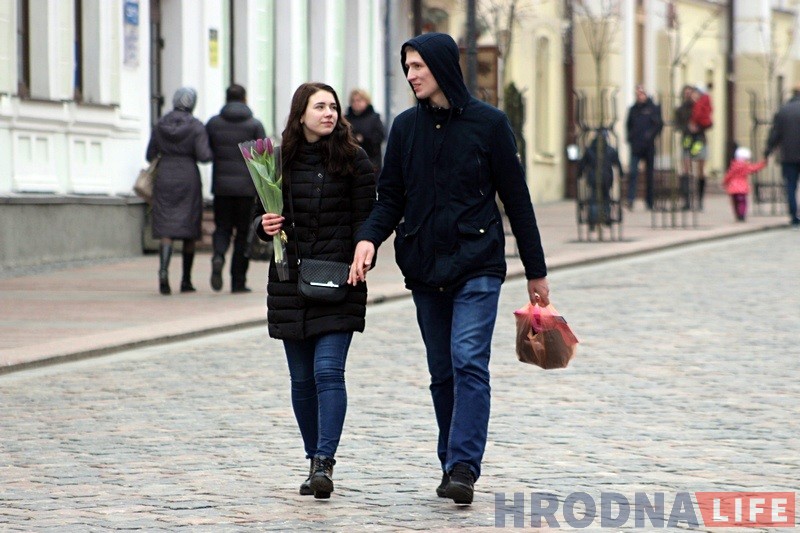 У гэты дзень у Гродне праходзяць святочныя мерапрыемствы. Жанчынам дараць кветкі, у цэнтры горада выступаюць артысты.