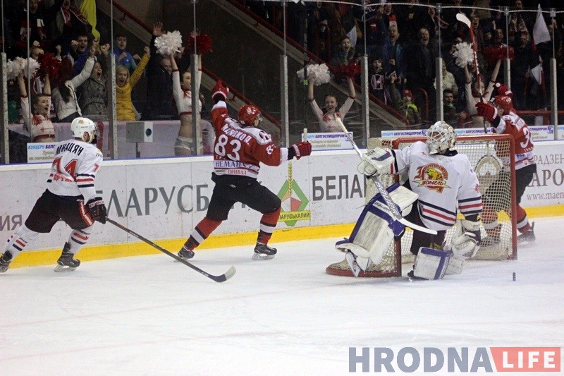 На працягу ўсяго матчу каманда Сяргея Пушкова кантралявала гульню, было шмат барацьбы i небяспечных нападаў – менавiта тое, што любяць гродзенскія заўзятары.