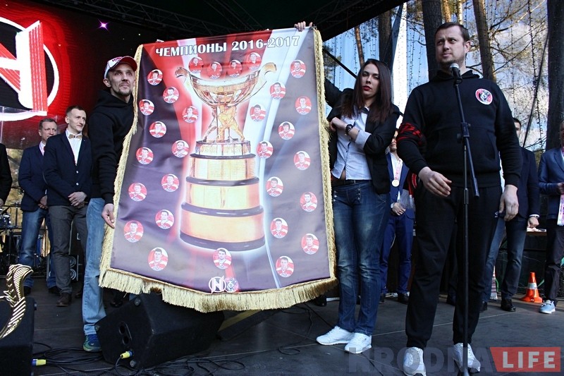 Некалькі сотняў чалавек ў нядзелю 30 красавіка наведала ўшанаванне хакейнага “Нёмана” на базе адпачынку “Прывал”, які ў сезоне 2016/2017 гадоў стаў уладальнікам Кубка Салея і Кубка прэзідэнта. На мерапрыемстве прайшло ўзнагароджанне гродзенскай каманды залатымі медалямі, фотасесія з заўзятарамі, ўручэнне самага вялікага вымпела у Беларусі, конкурсы з рознымі падарункамі, а таксама адбыўся канцэрт гурта “Бумбокс”.