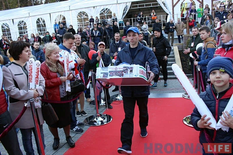Свой жа падарунак “Нёману” зрабіў і гродзенскі фан-клуб. Фанаты ўручылі камандзе самы вялікі вымпел ў гісторыі беларускага хакея – гульцы і галоўны трэнер падзякавалі фан-клуб за такі падарунак і паабяцалі, што магчыма ў будучым ён будзе вісець у распранальні каманды.