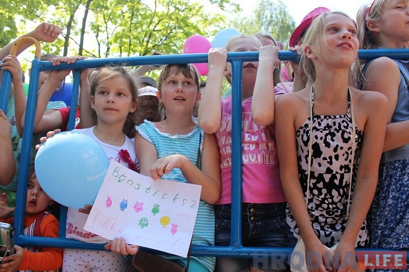 Некалькі сотняў гродзенскіх дзяцей разам са сваімі бацькамі прыйшлі ў нядзелю 21 мая ў парк Жылібера, каб пазнаёміцца з новымі Бонсцiкамi, якія прыехалі ў Гродна ў рамках гастроляў па Беларусі.