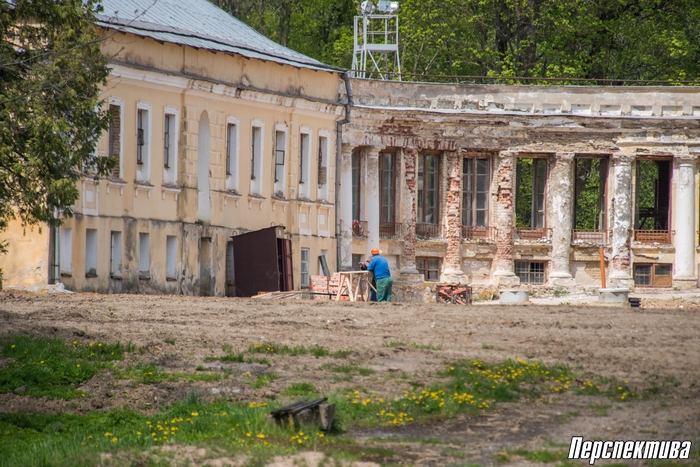 Работы па сядзібе пачаліся каля пяці гадоў таму. У маёнтку уладкавалі паркавую зону і вадаёмы. Але апошнім часам на будпляцоўцы назіралася зацішша. Ва ўласніка не было сродкаў, каб працягнуць рэканструкцыю.