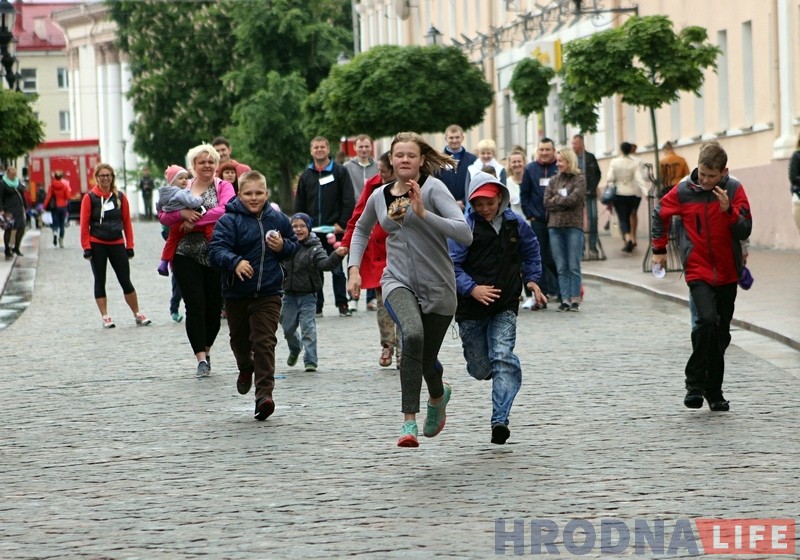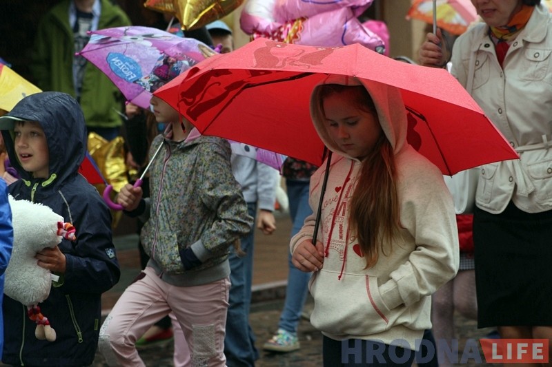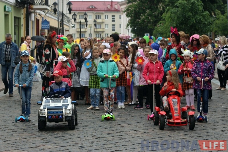 Свята, прысвечанае Дню абароны дзяцей, пачалося ў Гродне з дажджу i маляўнічага шэсця некалькіх сотняў маленькіх гродзенцаў па пешаходнай вуліцы Савецкай, а таксама з розных забегаў у цэнтры горада.