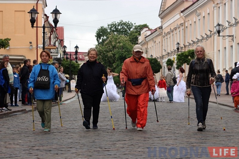 Пасля на Савецкую выйшлі прадстаўнікі хоспіса, якія арганізавалі дабрачынны марафон “Дапамагаючы жыццю”. У рамках яго адбыліся забегі прадстаўнікоў розных арганізацый, слiнгамам, аматараў скандынаўскай хады і нявест.