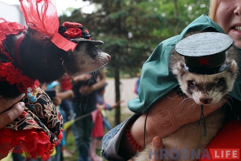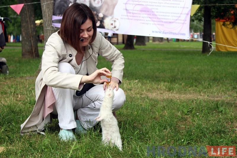 “Мы хацелі пазнаёміць гродзенцаў з нашымі гадаванцамі і паказаць, што тхары гэта мірныя жывёлы, якiя могуць жыць у нашых кватэрах, – распавядае мінчанка Таццяна Наканечная. – У Гродна я прыехала з Басяй, гэта не мой тхор, мае тры дома на каранціне. Так атрымалася, што яны ўсе ў мяне адмоўнікі – іх кінулі гаспадары”.