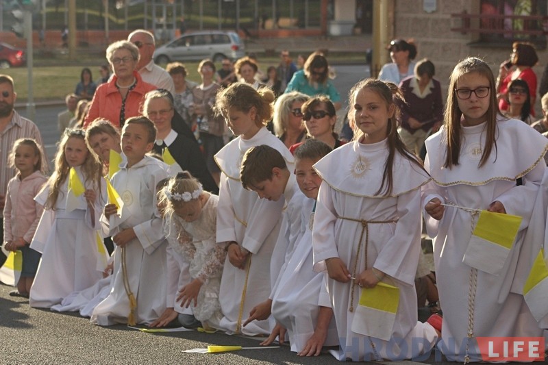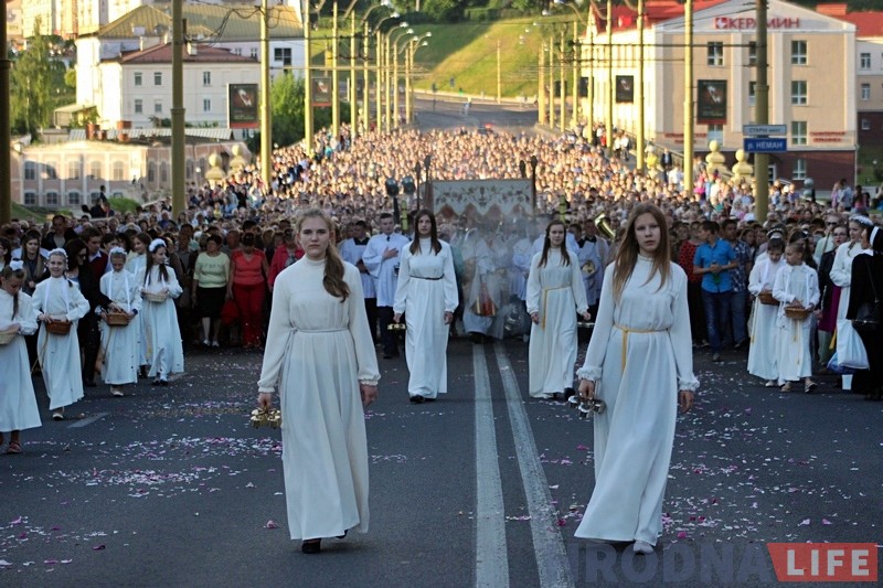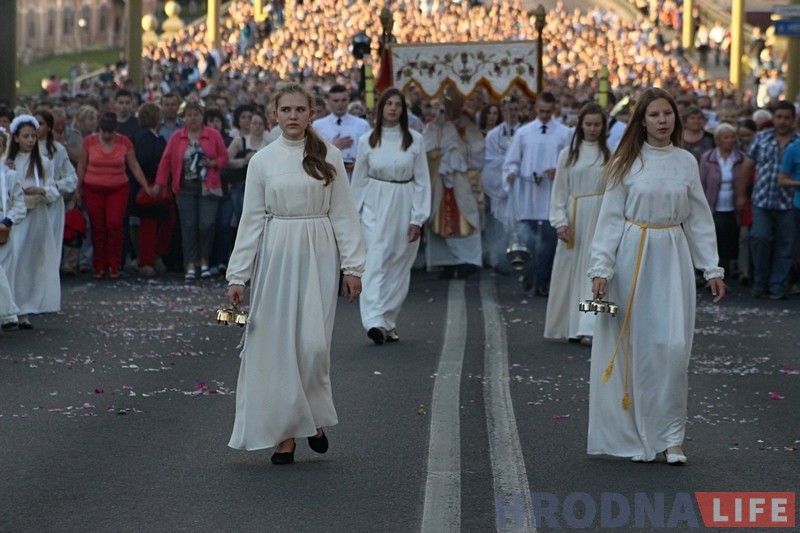 Традыцыйная працэсія ў гонар свята Божага Цела прайшла ўвечары 15 чэрвеня па цэнтральных вуліцах Гродна. У ёй прынялі ўдзел тысячы вернікаў.