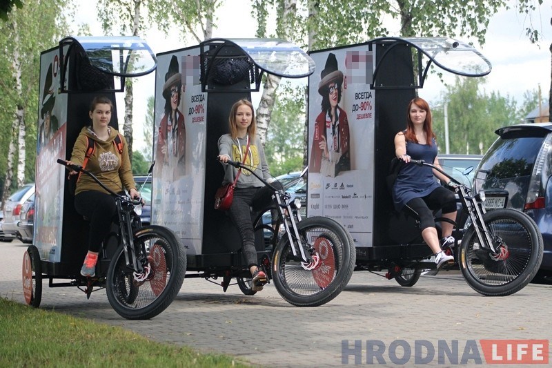 У Гродне з’явілася веларэклама 17 чэрвеня 2017, 16:10 Тры адмысловыя ровары з рэкламнымі банерамі выехалі на вуліцы Гродна 17 чэрвеня.Гэта першая веларэклама ў Гродне. Для горада і Беларусі гэта яшчэ навінка, а для Заходняй Еўропы – даўно звычайная справа. бізнесфотаРаім пачытаць У цэнтры Гродна адкрылася фотастудыя — кліентаў прывабліваюць жывымі куранятамі На 5 чалавек узбудзілі 8 крымінальных і 18 адміністратыўных спраў. Гісторыя аднаго фота з “Маёнтка Падароск” Сустрэчы з мэрам, акцыі салідарнасці і гіганцкі сцяг: пратэсты і страйкі ў Гродна