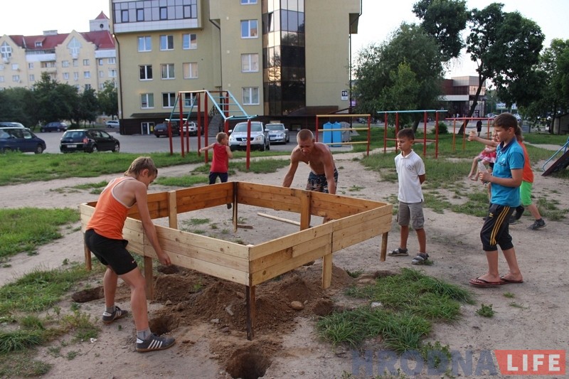 Гродзенцы працягваюць самастойна ў сваіх дварах майстраваць дзіцячыя пляцоўкі. Гэтым разам ад паслуг ЖЭСаў адмовіліся жыхары вуліцы Ажэшкі і праспекта Будаўнікоў. У двух дварах мясцовыя жыхары пачалі будаваць для сваіх дзяцей пясочніцы. Каробкі яны ўжо зрабілі, зараз чакаюць пяску.