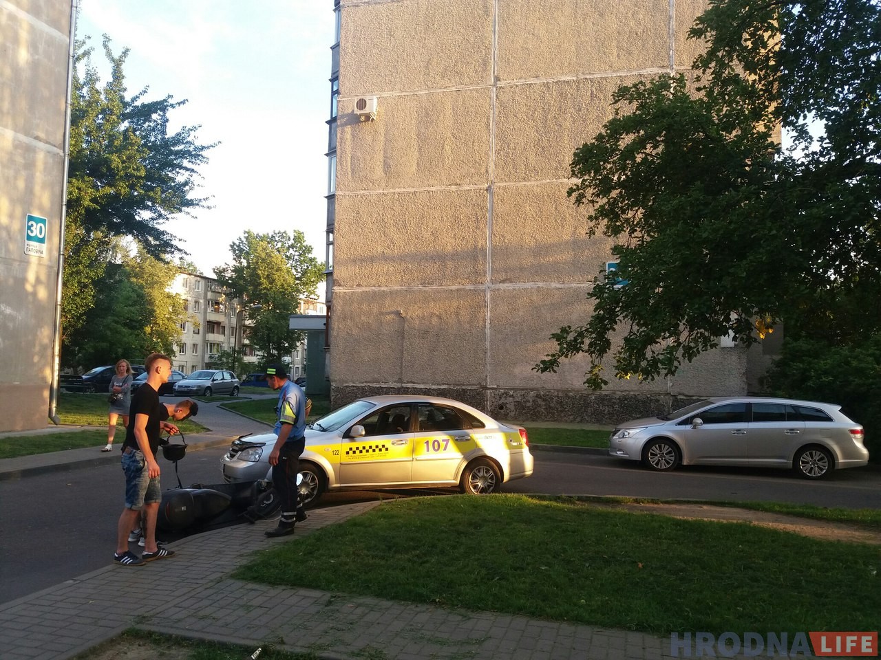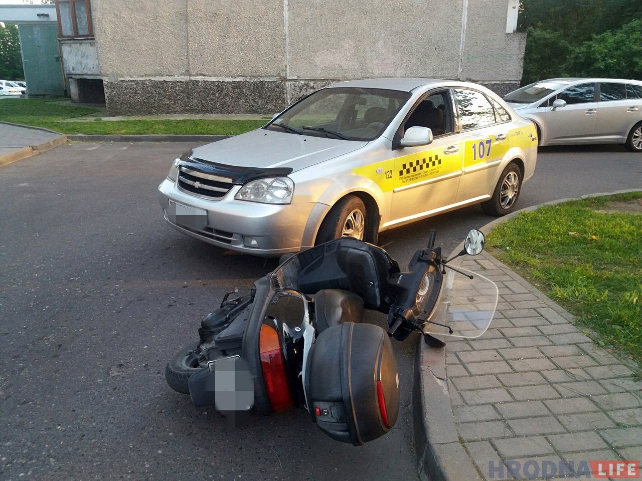 Як паведамляюць сведкі, скутарыст на маленькай хуткасці выязджаў са двара, калі на яго нечакана на павароце выехаў аўтамабіль таксі.