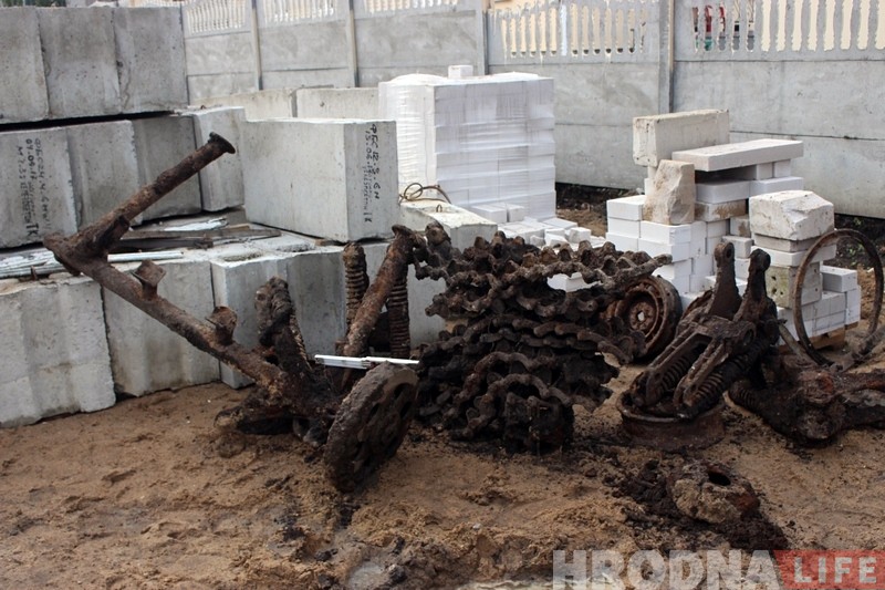 “У гэтым выпадку знайшлі да нас. Трактар каўшом капнуў і дастаў частку вайсковай тэхнiкi, і гэта дрэнна. Зараз, калі мы капаем, то грунт у нас увесь перамяшаны, штосьцi знаходзiм ужо ў вельмі дрэнным стане. Сёння атрымалася знайсці яшчэ некалькі частак ад тэхнікі, шмат разбітага посуду, флягу і рознае смецце”, – дадаў Міхаіл Мятла.