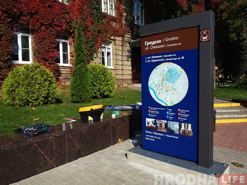 У Гродне да сусветнага Дня турызму на вуліцы Ажэшкі ўсталявалі пробны інфармацыйна-навігацыйны стэнд для турыстаў. Калі ён сябе апраўдае, то ў цэнтры горада з’явіцца яшчэ некалькі такіх канструкцый.