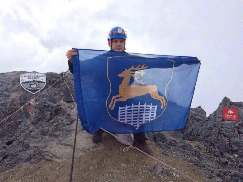 На піку вышынёй у 4 884 м Вадзім Фралоў разгарнуў сцягі Беларусі і Гродна. У той дзень, акрамя беларускага, на піку былі яшчэ два сцягі: расійскі і ўкраінскі.