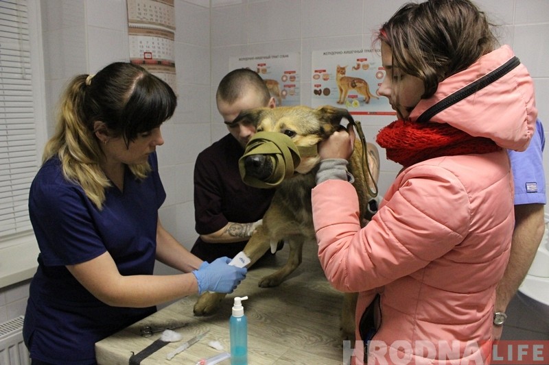 Першай на дапамогу пацярпелай жывёле прышла Юлія, якая разам з сяброўкай завезла сабаку ў ветэрынарную клініку.