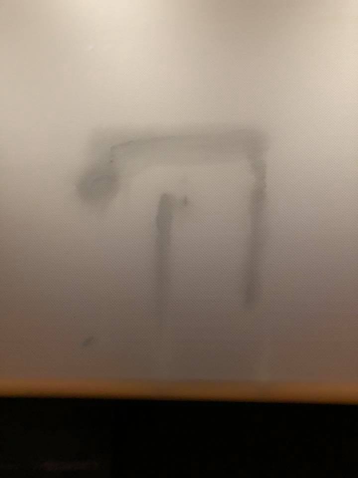 Дзяніс зрабіў некалькі фотаздымкаў, на якіх відаць, што экран ў кінатэатры сапраўды брудны.