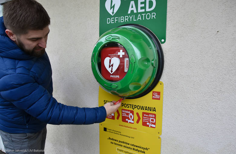 Дэфібрылятары былі ўсталяваныя ў шафах звонку розных будынкаў у 13 месцах Беластока.