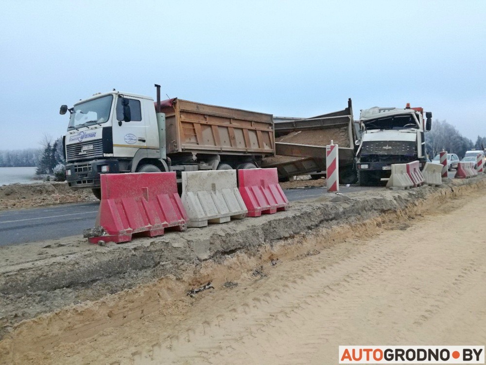 Вядома, што там сутыкнуліся два МАЗы, якія перавозілі пясок для рэканструкцыі трасы. Падчас ДТЗ прычэп МАЗа “заламала”, з яго высыпаўся пясок на дарогу.