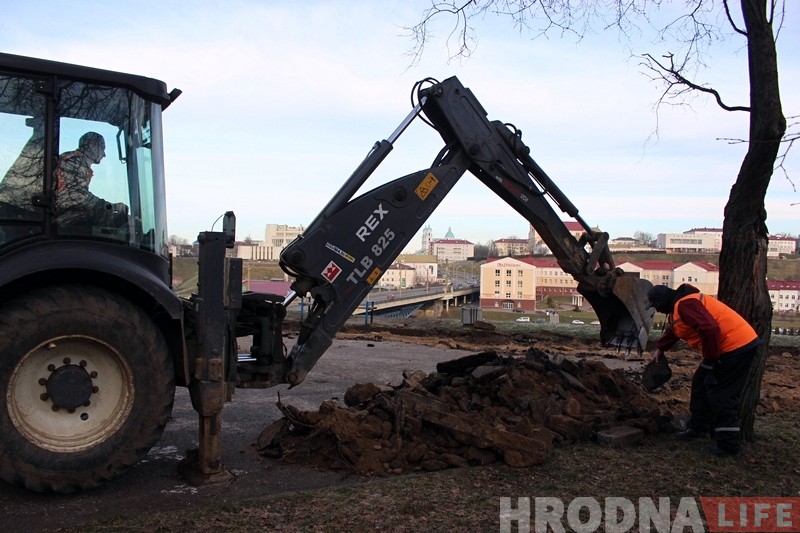 «На першым этапе мы пакуль дэмантуем непатрэбны асфальт. Што далей будзе – пакуль не ведаем, бо ў нас праекту на руках яшчэ няма», – адзначылі рабочыя «Рэмбудаўтадора».