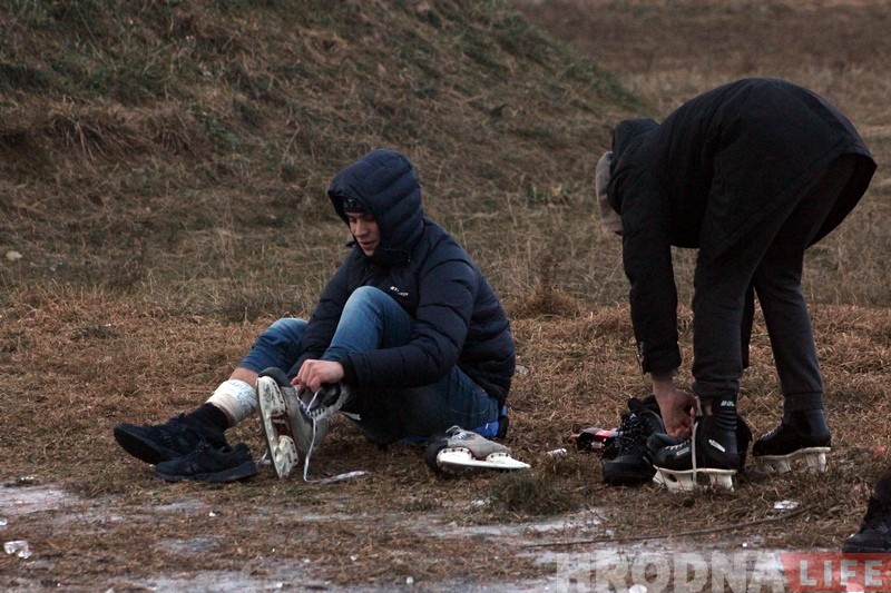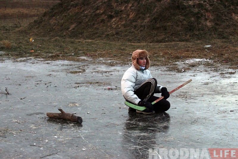 «Гэта звычайнае поле, дзе ўвесь час стаяла вада. Самая сапраўдная лужына. А як далі халады, то яна замерзла і атрымаўся каток, – распавядае Андрэй. – Раней замярзала толькі малая частка. А цяпер, мабыць, у лужыне было больш вады. У нас у ваколіцы няма хакейных каробак, таму гэта адзінае месца, дзе мы катаемся».