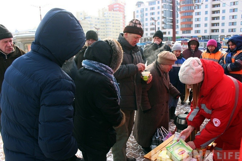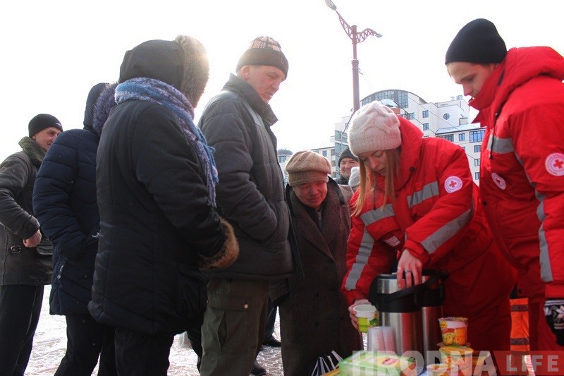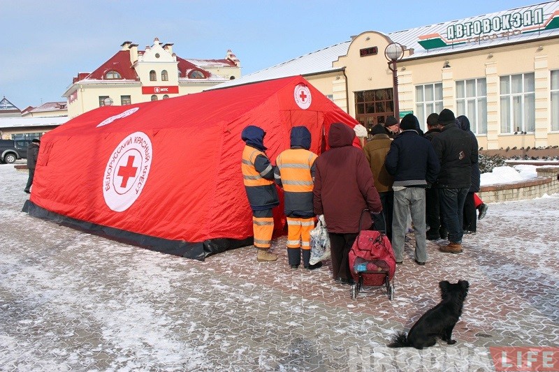 З раніцы 27 лютага валанцёры Чырвонага Крыжа разгарнулі каля гродзенскага аўтавакзала пункт абагрэву. Кожны можа пагрэцца ў намёце, а пры неабходнасці атрымаць першую дапамогу. Таксама валанцёры раздаюць гараджанам гарачы чай і супы хуткага прыгатавання.