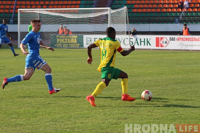 “Нёман” па-гаспадарску пачаў актыўна. Першы небяспечны момант стварыў на 7-й хвіліне, калi Квашук добра прабіў штрафны з 40 метраў. Але галкіпер гасцей здолеў выцягнуць мяч.