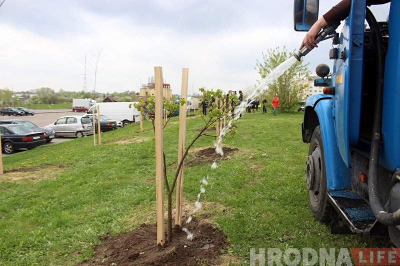 Высаджваць юбілейную алею прыехалі супрацоўнікі адміністрацым Ленінскага раёна розных гадоў, а таксама школьнікі, студэнты, ветэраны і жыхары вуліцы. Усяго было высаджана больш за 40 дрэў: ліпы, бярозы, каштаны, некалькі клёнаў і дуб.