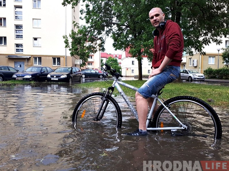 Першы моцны дождж у маі зноў паказаў гродзенцам праблемныя месцы горада. Былі затопленыя цэнтральныя вуліцы. Рух грамадскага транспарту быў ускладнены.