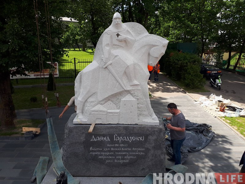 У чацвер 24 мая каля гродзенскіх замкаў усталявалі помнік Давыду Гарадзенскаму. Вага манумента – каля 16 тон. Скульптуру рабіў Сяргей Аганаў. Менавіта ў яго выкананні гродзенскі ваяр больш спадабаўся журы творчага конкурса праектаў.