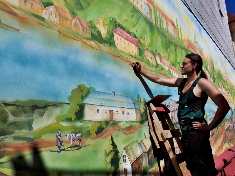Пасля фестывалю нацыянальных культур мастакі прыступяць да чарговага малюнку ў двары гандлёвага цэнтра ABC. Там з’явяцца знакавыя асобы Гродна.