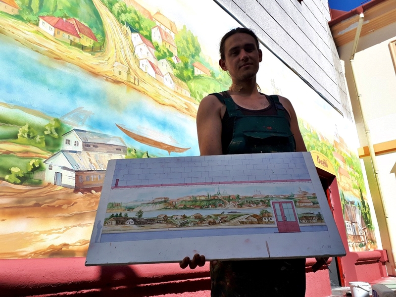 «На першых малюнках у нас былі вуліцы старога Гродна, а зараз мы вырашылі намаляваць панараму горада, – распавядае заказчык Андрэй Сурба. – Эскіз, якога мы прытрымліваліся, быў узгоднены з мастацкім саветам, гандлёвым домам “Нёман” і ABC. Выніковая праца, мне здаецца, атрымалася нядрэнная».