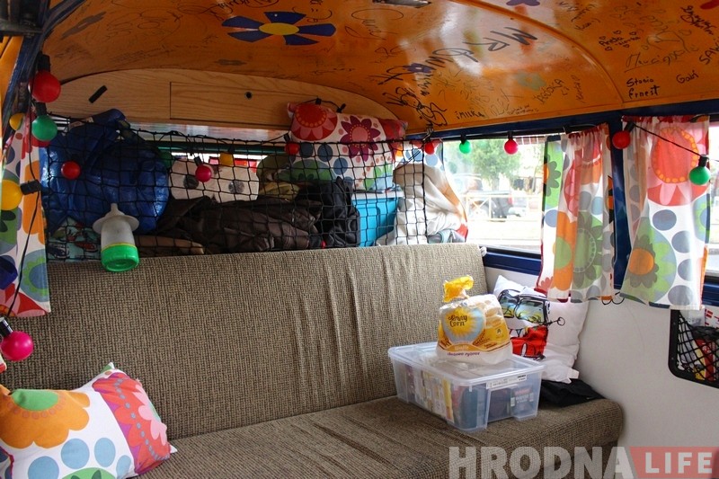 “Белорусскую границу мы проехали с улыбкой на лице, даже пограничник подбежал нас фотографировать, – рассказывает Марта. – Так что проблем с пересечением границы не было. На белорусской стороне даже подобрали попутчика и завезли его в центр Гродно. На прощание он у нас расписался в грузовике. Машина наша интересная и оформлена в хиппи-стиле. В Польше такие фургоны Volkswagen T2 1970-х годов называют огурцами”.
