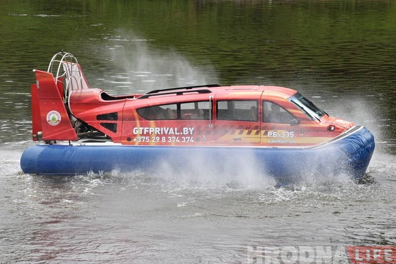 Незвычайнае судна з паветранай падушкай з’явілася ў пачатку ліпеня ў цэнтры Гродна. Кацер-амфібію купіла база адпачынку “Прывал”, якая ўжо аказвае паслугі па перавозцы людзей па Нёмане. Новае судна можна выкарыстоўваць на вадзе круглы год.