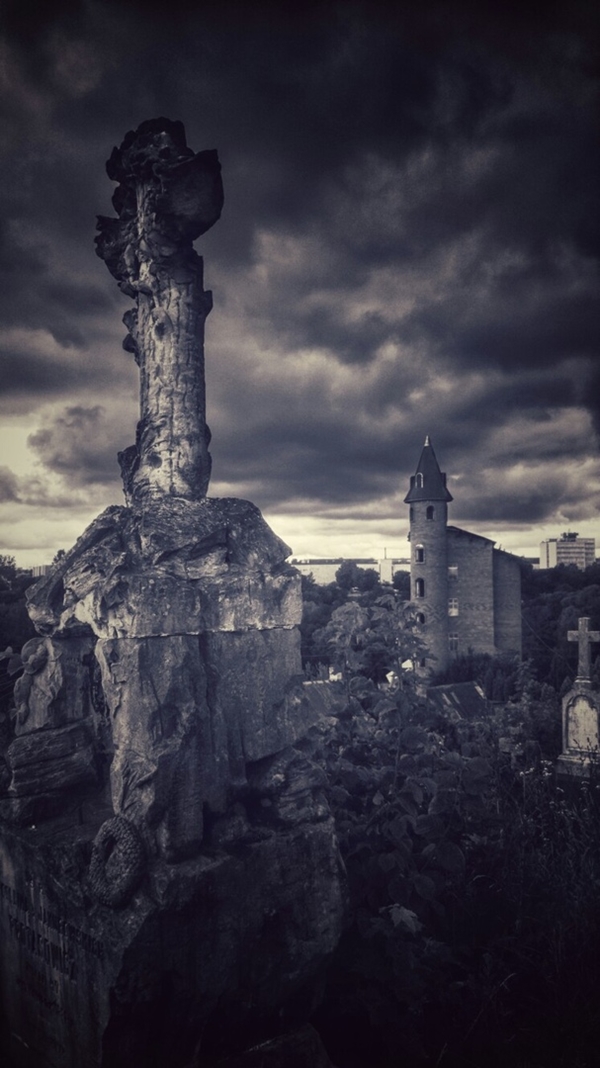 «Старыя каталіцкія могілкі ў Гродне — адны з самых старадаўніх пахаванняў у Беларусі. Калі ўдала злавіць момант з навальнічным небам і прымяніць трохі фільтраў - атрымліваюцца вельмі атмасферныя крыпавыя [з англійскай мовы creepy — які кідае ў дрыжыкі, жудасны] кадры з фільмаў жахаў», — распавяла Алена.