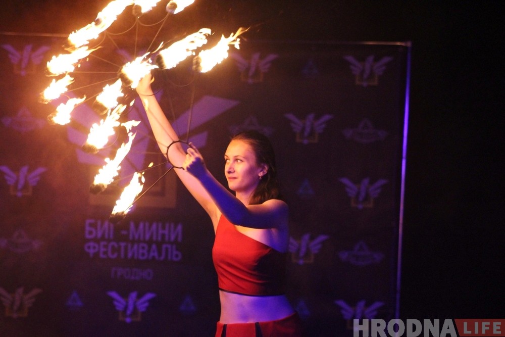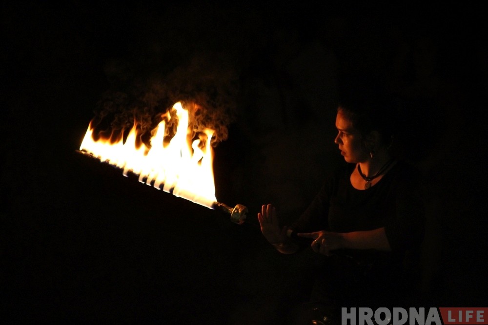 Першы дзень фестывалю вулічных мастацтваў завяршыла паўтарыгадзіннае фаер-шоў у парку Жылібера. Выступалі прафесіяналы вогненнага жанру з усёй Беларусі і Украіны.