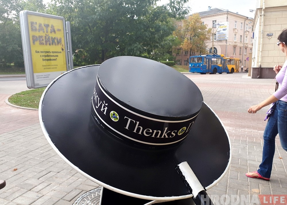 Нагадаем, новыя “cметніцы-джэнтльмены” з’явіліся ў цэнтры Гродна 13 верасня. Яны на пяці мовах дзякуюць мінакам за чысціню на вуліцах горада. У англійскім слове “дзякуй” была дапушчана памылка. Замест “Thanks” напісалі “Thеnks”.