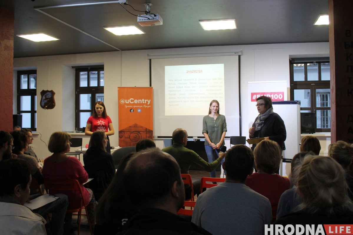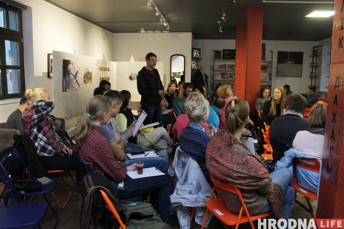 Сустрэча ў “Цэнтры гарадскога жыцця” распачалася са знаёмства, бо некаторыя наведвальнікі прыйшлі на курсы ўпершыню. Кожны называў сваё імя і адказваў на зададзенае пытанне. Аказваецца, гродзенцы любяць чытаць Караткевіча, Геніюш, Карпюка і Брэдберы. Іх любімыя месцы ў горадзе – Каложа, назіральныя пляцоўкі і “Цэнтр гарадскога жыцця”. А ідэальны дзень– калі яны могуць паразмаўляць на беларускай мове.