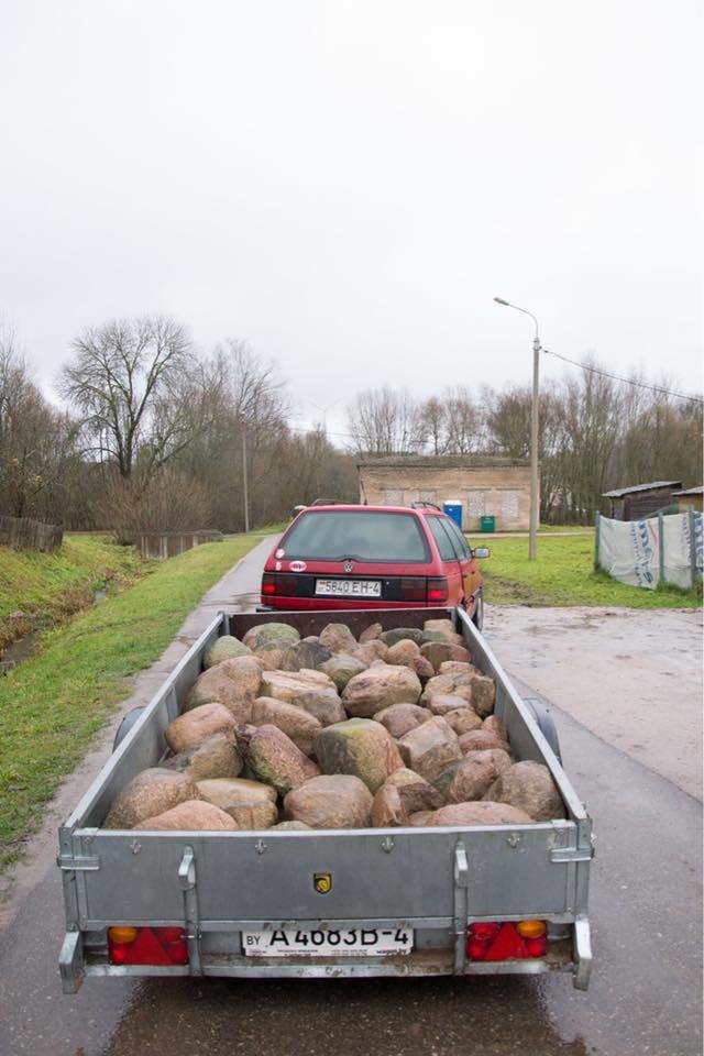 На заклік адгукнуліся многія. Святлана і Андрэй Коласы, Дзмітры Карабач і Андрэй Ігнацік з Падароска (Ваўкавыскі раён) прывезлі прычэпчык валуноў сваёй машынай.