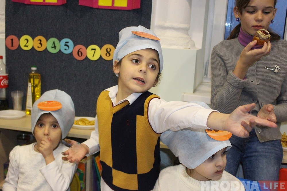 У сінагозе маленькіх гродзенцаў вучылі рабіць пончыкі, а таксама распавялі ім гісторыю свята.
