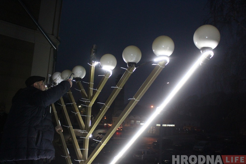 Гродзенскія яўрэі сабраліся ўвечары 2 снежня ў Вялікай харальнай сінагозе, каб адзначыць свята Ханукі. Традыцыйна святкаванні пачаліся з запальвання галоўных свечак балконе сінагогі.