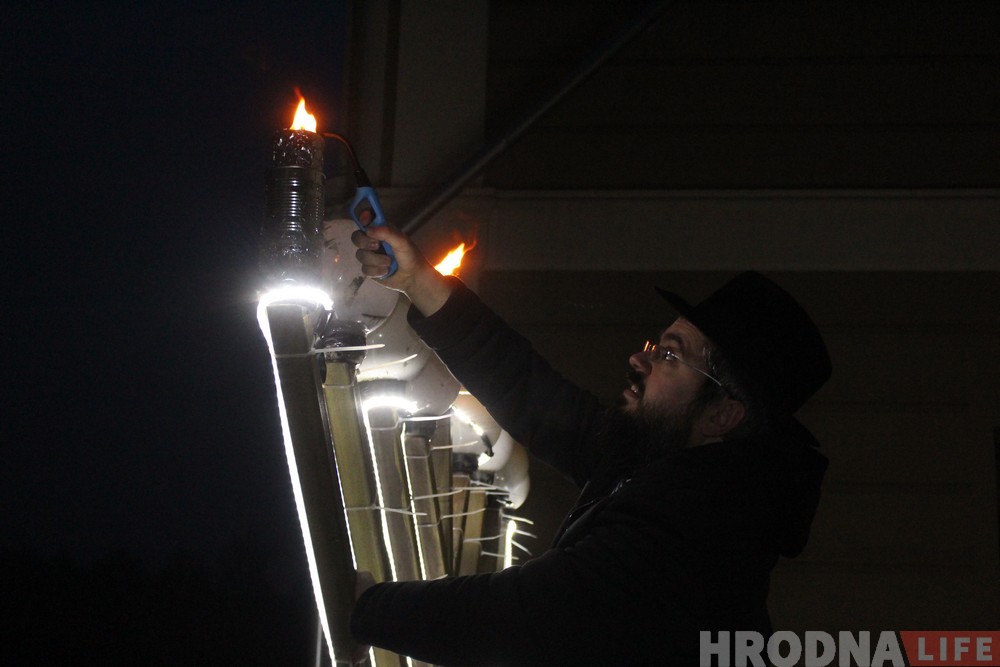 Асноўная традыцыя Ханукі – цырымонія запальвання свечак. У Гродне яна пачынаецца з таго, што рабін Іцхак Кофман і старшыня абшчыны Барыс Квяткоўскі запальваюць першыя дзве вялікія ханукальныя свечкі, якія ўсталяваныя на фасадзе сінагогі. Сёлета ўпершыню разам з запальваннем свечак прайшоў салют.