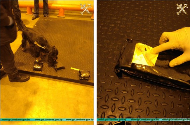 Легкавы аўтамабіль, якім кіраваў жыхар Еўрасаюза, агледзелі з прымяненнем інспекцыйна-надгляднага комплексу: сканаграмы, кіналагічнай службы і газааналізатара. З абсталяванага ў маторным адсеку аўтамабіля тайніка вынялі тры скруткі з парашкападобным рэчывам белага колеру, упакаваным у чорны паліэтылен, агульнай вагой каля 2,5 кг.