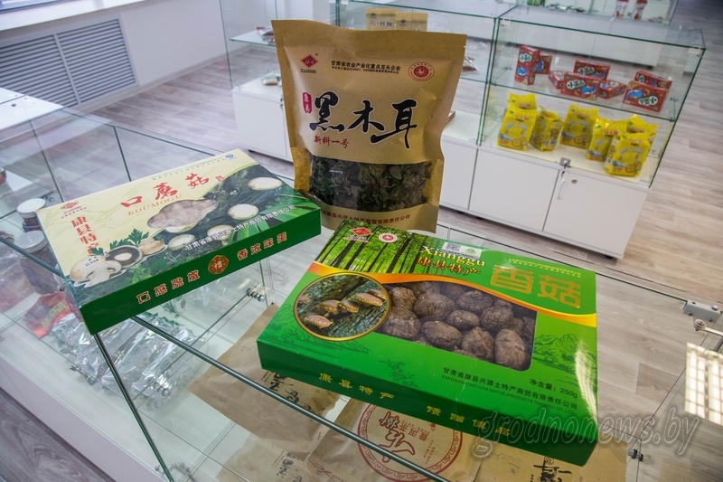 Тут можна ўбачыць асаблівыя прадукты, якія ёсць толькі ў Кітаі. Цяпер гэта сухафрукты, гарбаты, розныя алеі і грыбы. Кансультанты навучаць, як правільна іх прыгатаваць.