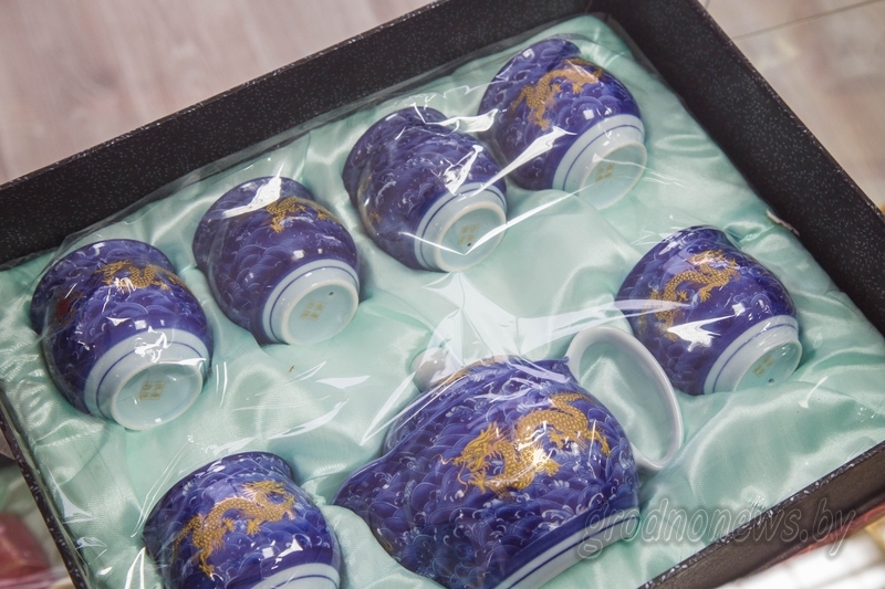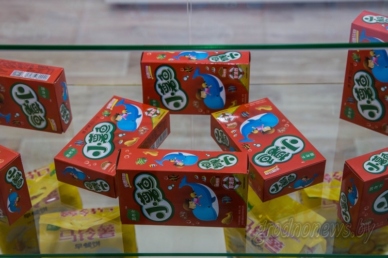 Яшчэ ёсць фруктовыя чыпсы з яблыкаў, персіка, трускаўкі і фінікаў, семечкі, прыправы, а таксама трохі прамысловых тавараў. Ёсць таксама аксэсуары для кітайскага чаявання. Купіць пакуль нічога нельга – толькі пазнаёміцца з асартыментам.