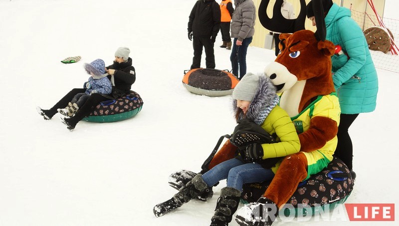 Першым сустрэлі гасцей Дзед Мароз са Снягуркай і роставыя лялькі – талісман футбалістаў алень Губі і мядзьведзь. Спевы, танцы і карагоды сталі добрай размінкай перад спартыўнымі забавамі.