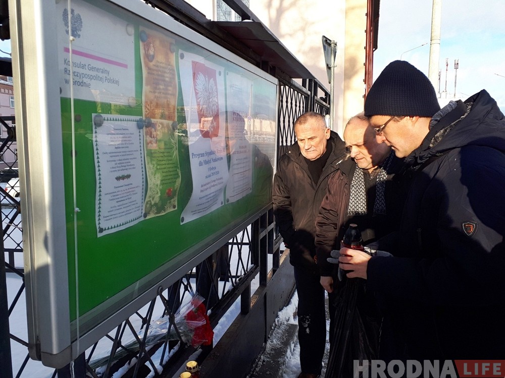 Гродзенскія актывісты і журналісты ўсклалі кветкі ля польскага консульства ў памяць аб забітым мэры Гданьска