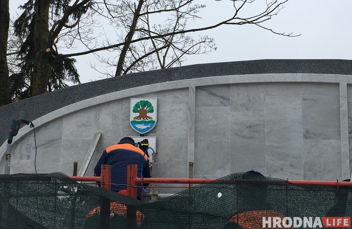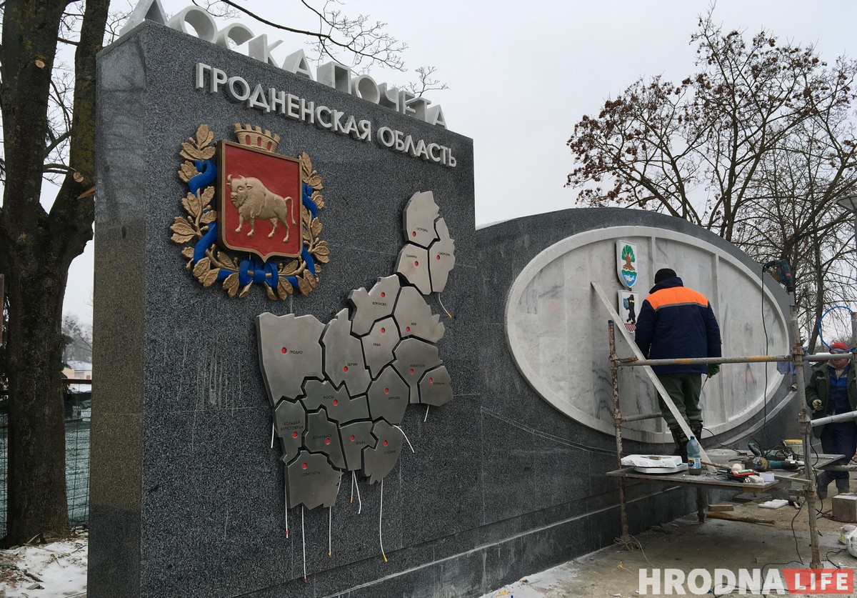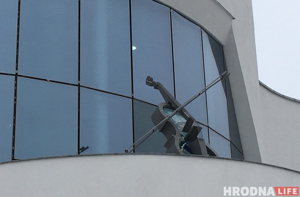На фасадзе Гродзенскай абласной філармоніі з’явілася трохмятровая віяланчэль. Яе размясцілі ўвечары 21 студзеня. Побач праходзіць устаноўка Дошкі гонару Гродзенскай вобласці, якую адкрыюць у маі.